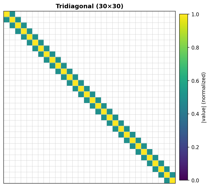 Tridiagonal (30×30) - Classic 1D Poisson pattern¶ |